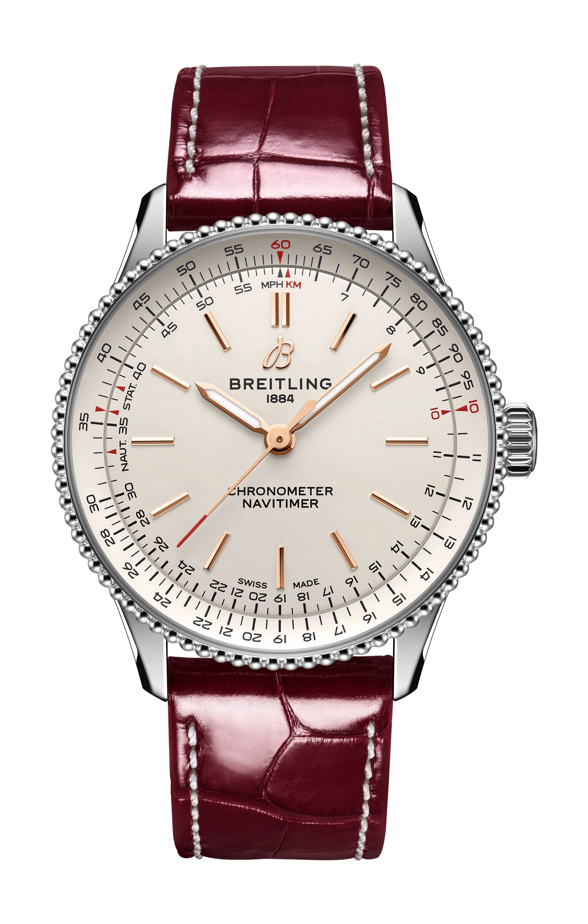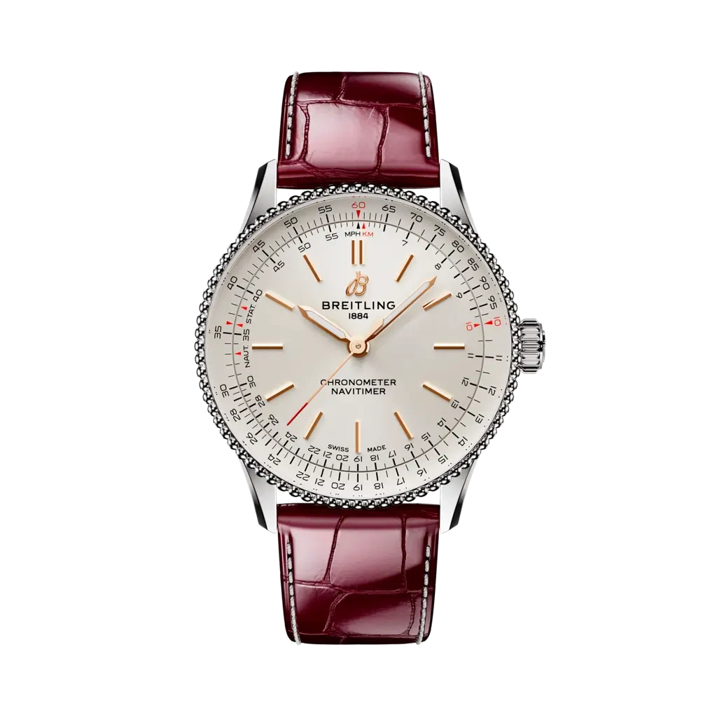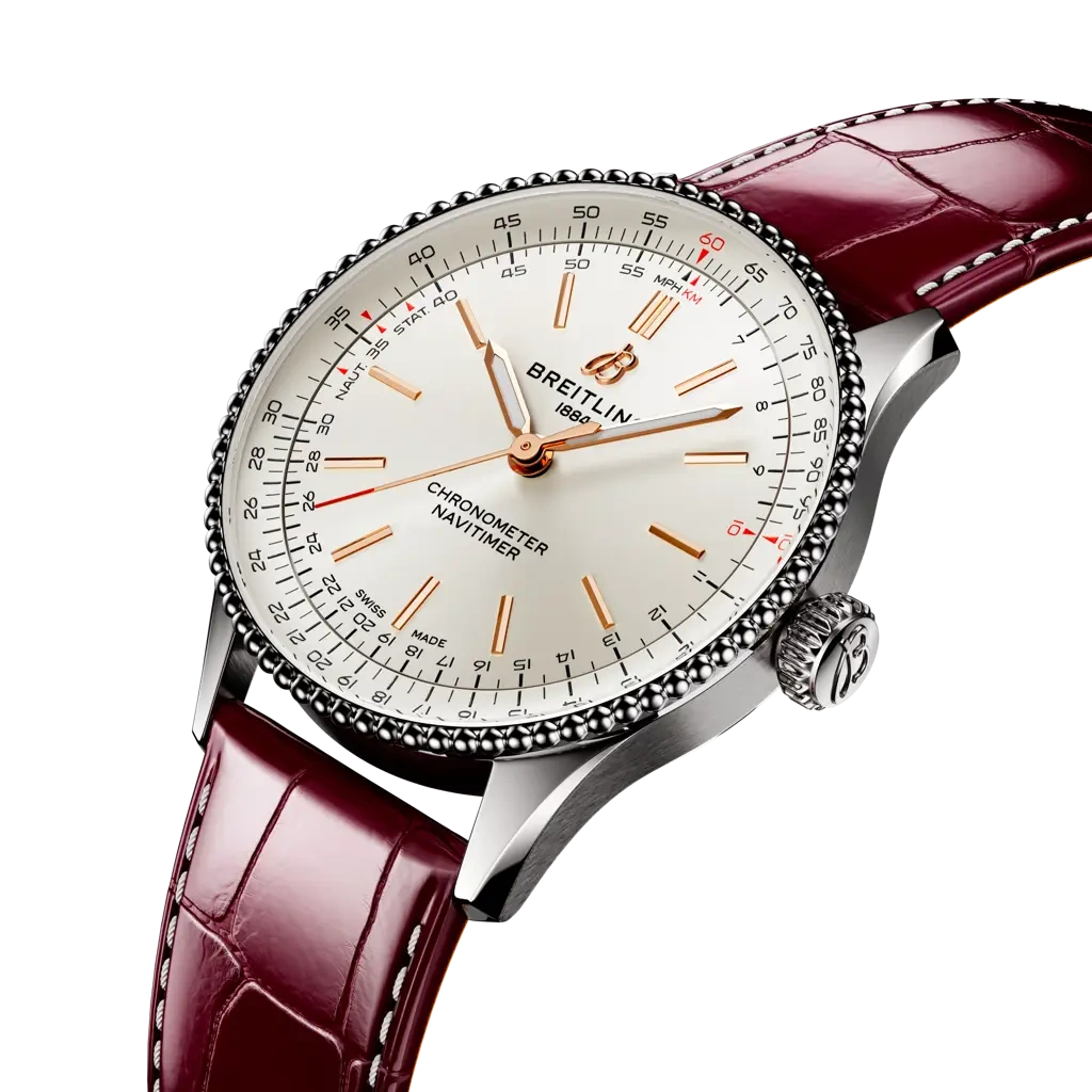 The Breitling Navitimer Automatic 36 A17327211G1P1 debuted in 2023. This Navitimer has a Stainless Steel case of 36.00mm, which houses the self-winding caliber Caliber 17 ND. The dial is Silver.
