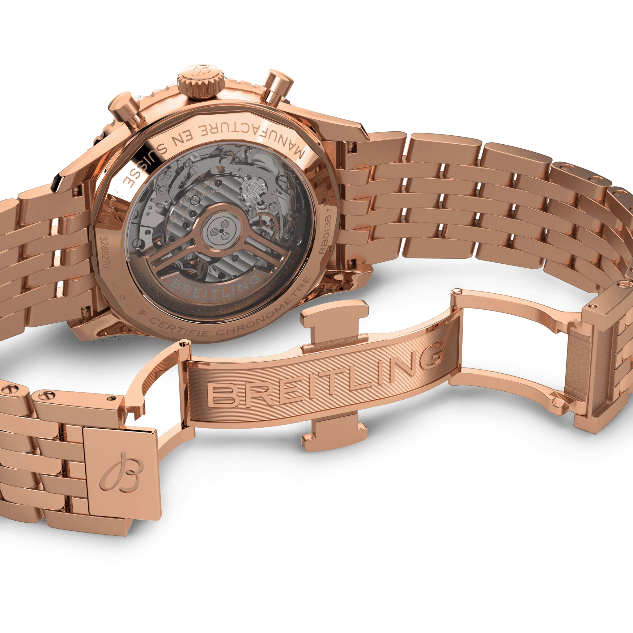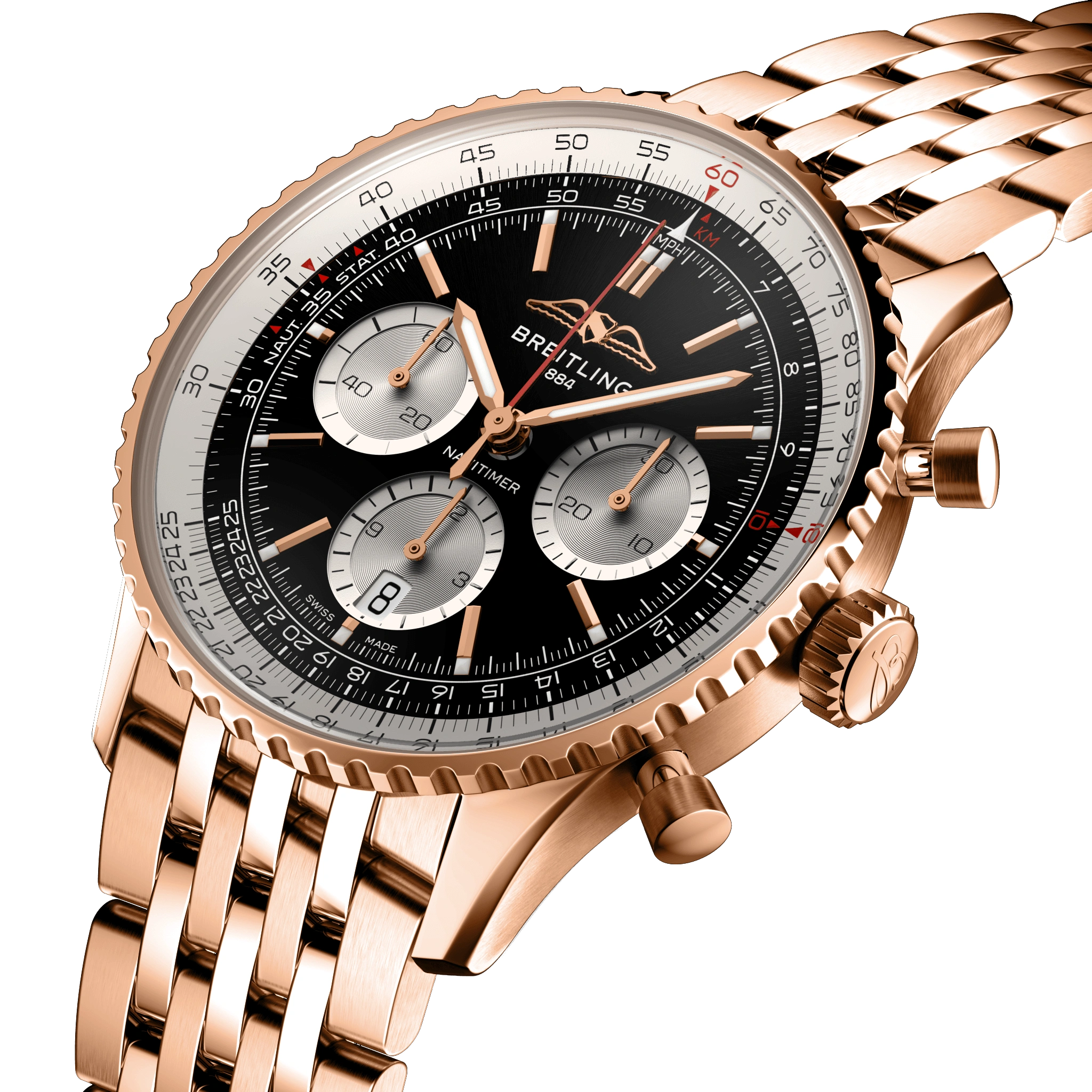 The Breitling Navitimer reference RB0138211B1R1 is part of Breitling's 2022 refresh of the iconic slide rule chronograph. This version has a Red Gold case of 43.00mm, which houses the brand's in-house caliber B01. The dial, with AOPA-inspired wing logo, is Black. For 70 years, Breitling’s original pilot’s watch has been beloved by aviators and tastemakers in equal measure. Worn by astronauts in space and the biggest stars on earth, it is Breitling’s most iconic timepiece and one of the most recognizable watches of all time.