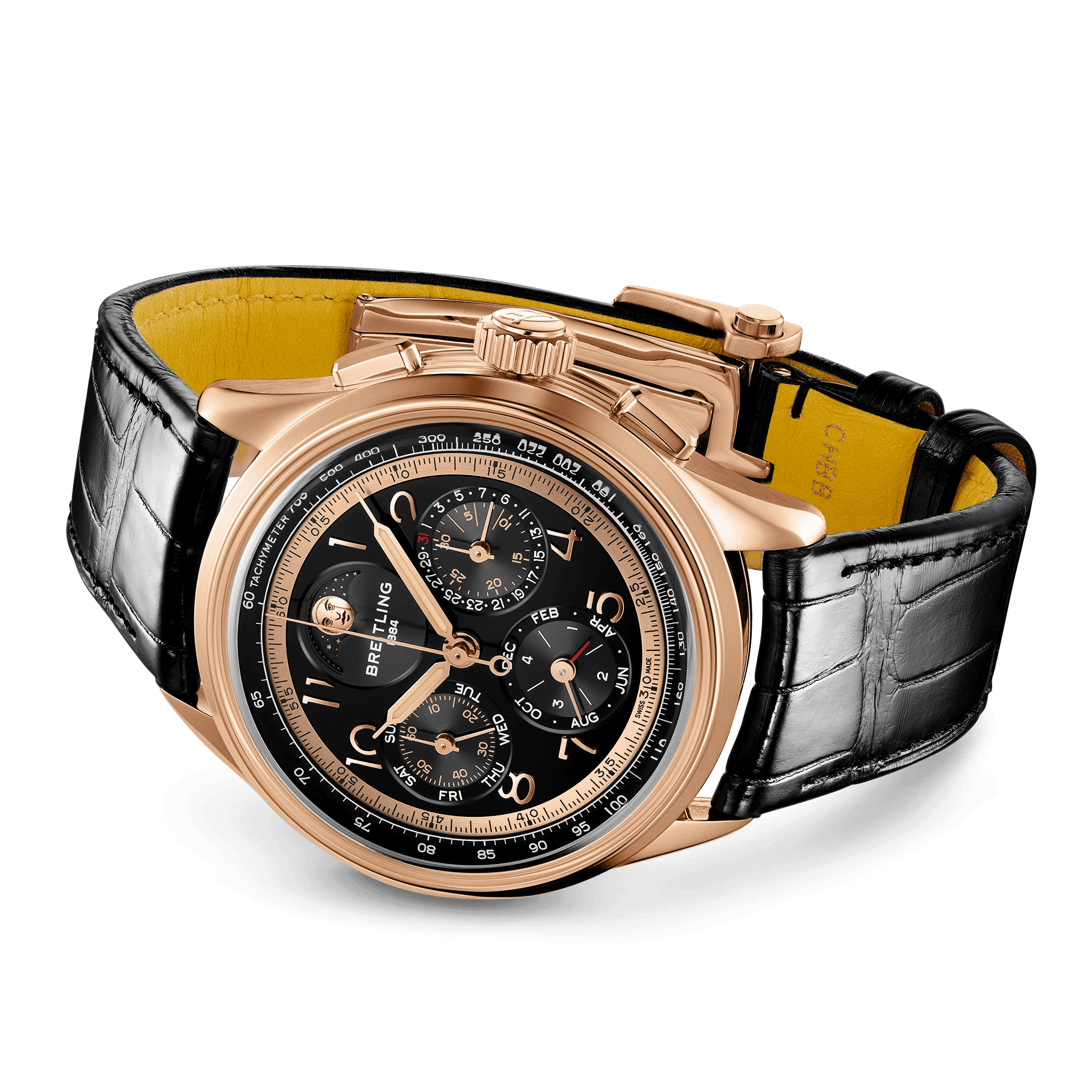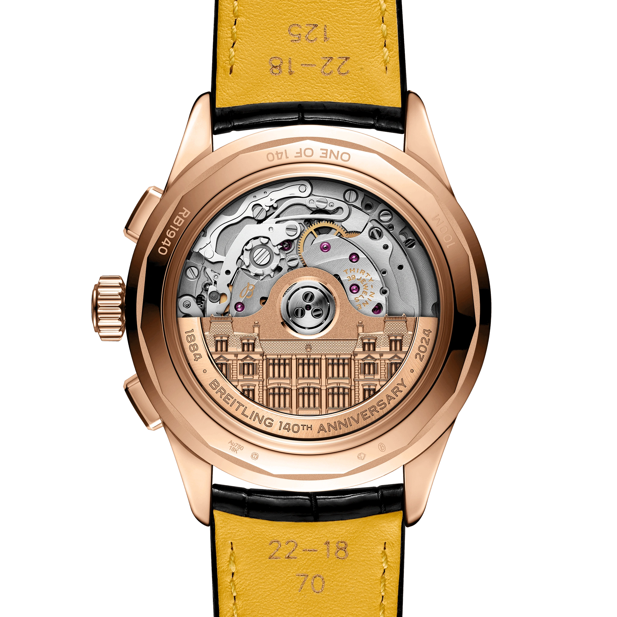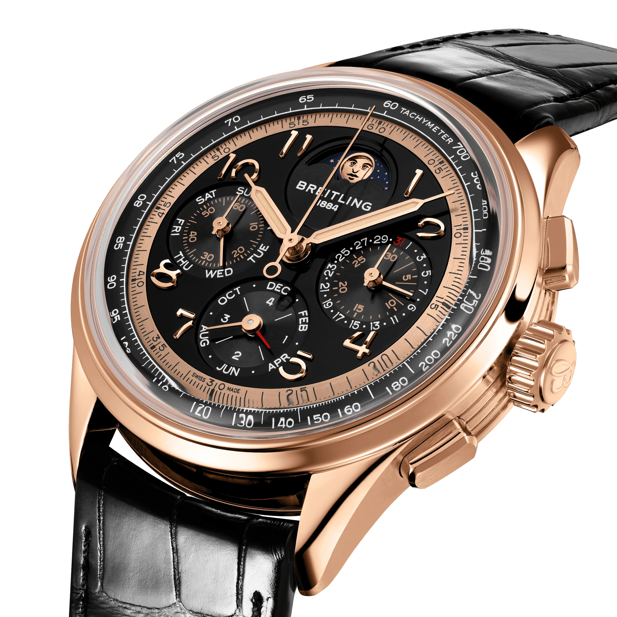 Breitling Premier B19 Datora 42 140th Anniversary Ref. RB19401A1B1P1 . Founded in 1884, Breitling is marking its anniversary with a new addition to its roster of pioneering achievements: the Caliber B19, the brand’s first perpetual calendar chronograph movement. The new caliber makes its debut in three limited-edition 140th-anniversary pieces representing Breitling’s icons: the Premier, Navitimer, and Chronomat. The Premier made its debut in 1943 as the watch that took the chronograph out of the cockpit and into society, making it a symbol—in the words of founder Willy Breitling—of “impeccable taste.”