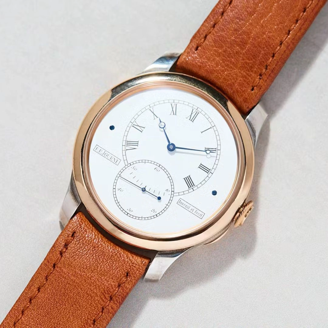 Authenticity, Rareness and Talent are the values that symbolize the chronometric works of F.P.Journe. At the crossroad between Arts and Haute Horology, the independent F.P.Journe Manufacture is a world in itself, embodying excellence, know-how and innovation, in the respect of the haute horology tradition from which François-Paul Journe is the proud guardian. With a limited production of less than 900 mechanical timepieces per year, the sanctuary of the F.P.Journe Manufacture honours artisanal work. Signed with the label -Invenit et Fecit- (invented and made), each F.P.Journe exclusive movement guarantees an in-house calibre, entirely invented, constructed, and assembled in the Geneva workshops. To each watch its watchmaker that is the rule at F.P.Journe and that is why the production will always remain extremely limited. F.P.Journe produces most of its mechanical movements in 18K rose Gold, a first in the watch world and a unique feature of the brand. These exceptional watch creations have granted F.P.Journe the awarding of the most important international watch prizes throughout the world.