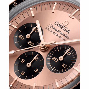 The Omega Speedmaster Moonwatch ref. 310.23.42.50.99.001 was introduced in 2024. This Speedmaster has a case in stainless steel & Sedna gold, with a ceramic bezel insert. This watch is motivated by caliber 3861.