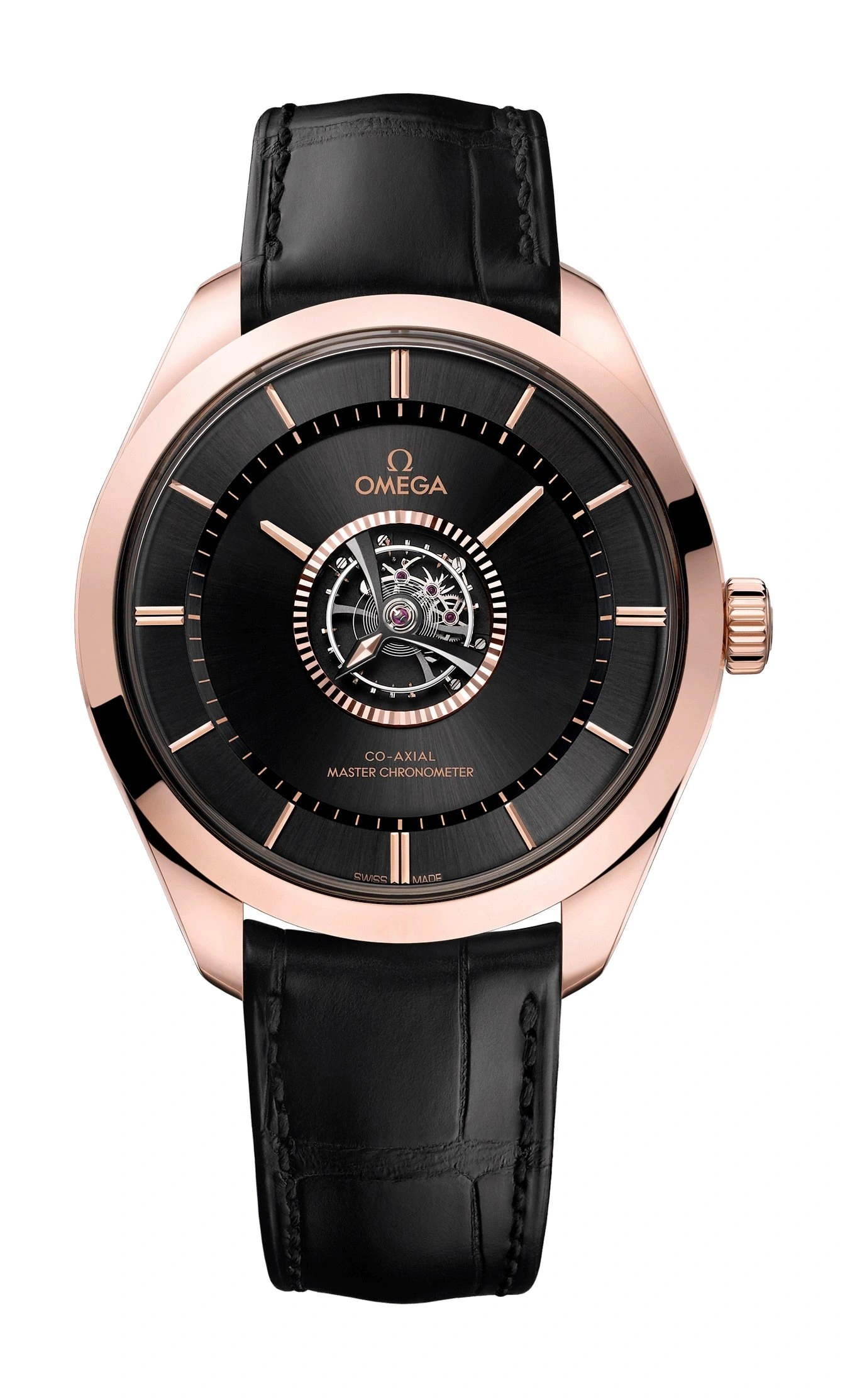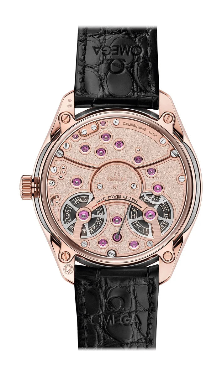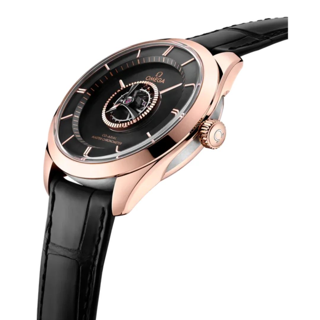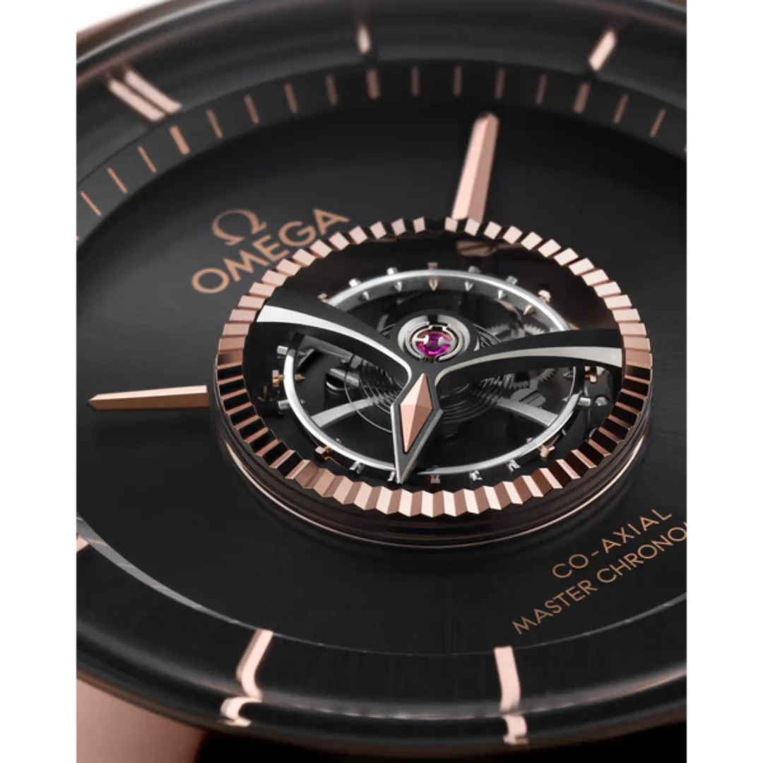 Introduced in 2020, the Omega De Ville reference 529.53.43.22.01.001 features the brand's first hand-wound 'Master Chronometer' tourbillon movement, which is housed in a case of a blend of 18K Sedna gold and 18K Canopus gold. Handcrafted by a team of selected watchmakers at OMEGA's Atelier Tourbillon in Switzerland, this extraordinary timepiece is the first hand-wound central tourbillon watch to be awarded Master Chronometer certification. The timepiece features a case made of a blend of 18K Sedna™ gold and 18K Canopus Gold™, an 18K Sedna™ gold bezel, and a sun-brushed dial in the same shiny material with black PVD coating.