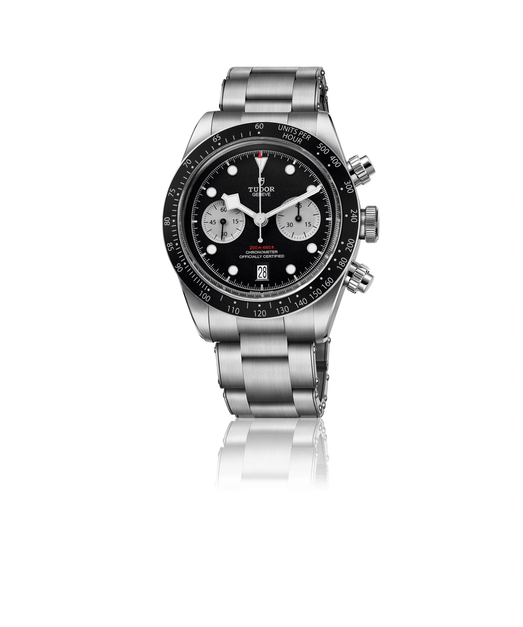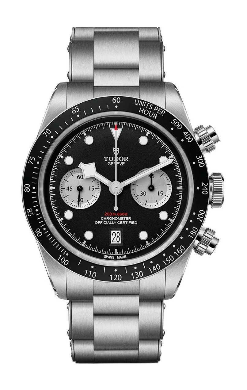 The Tudor Black Bay Chrono reference 79360N-0001 was introduced in 2021. This BB Chrono has a Stainless Steel case of 41.00mm, with a black anodised aluminum tachymeter insert. The Black dial has contrasting sub dials. Power comes from caliber MT5813.