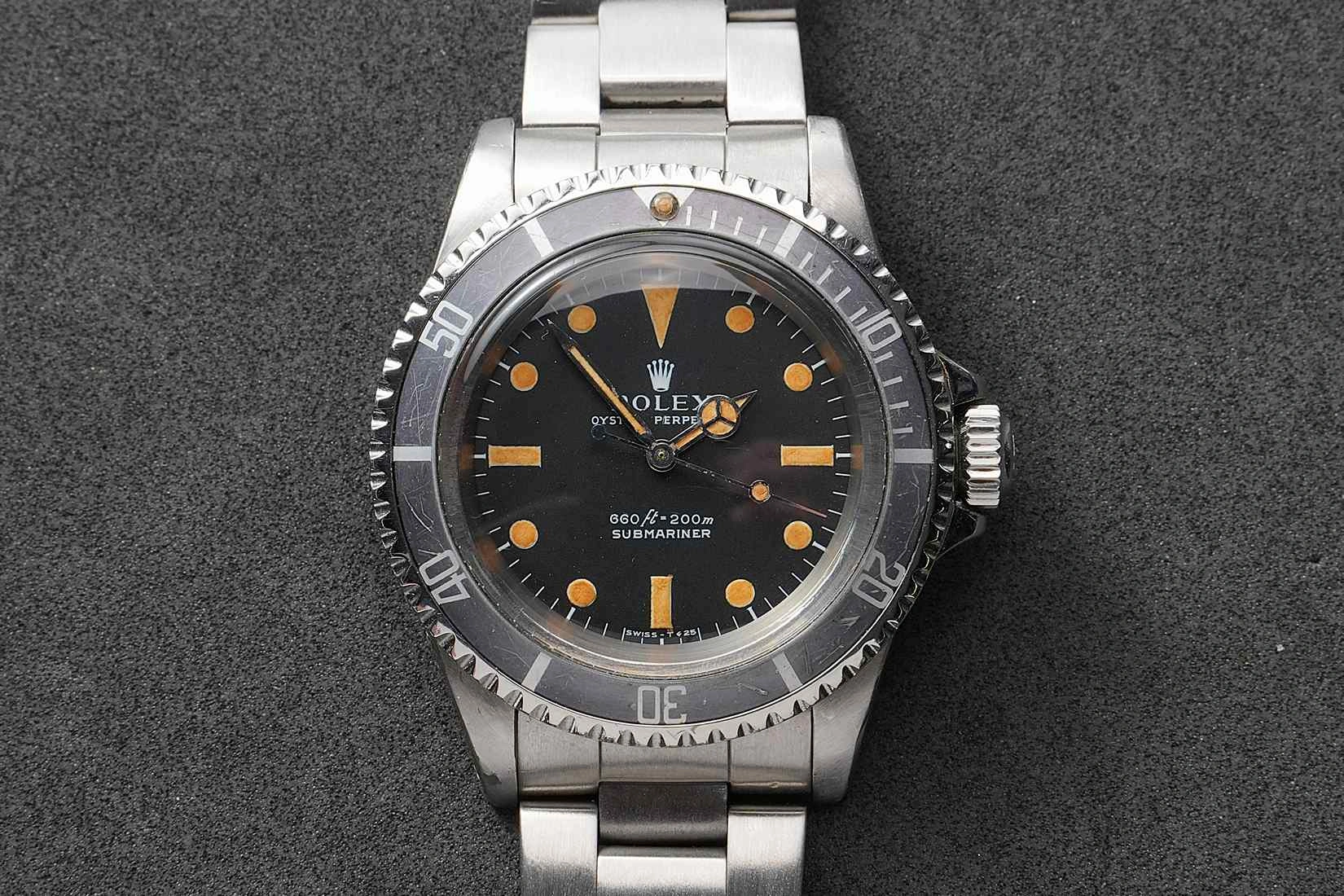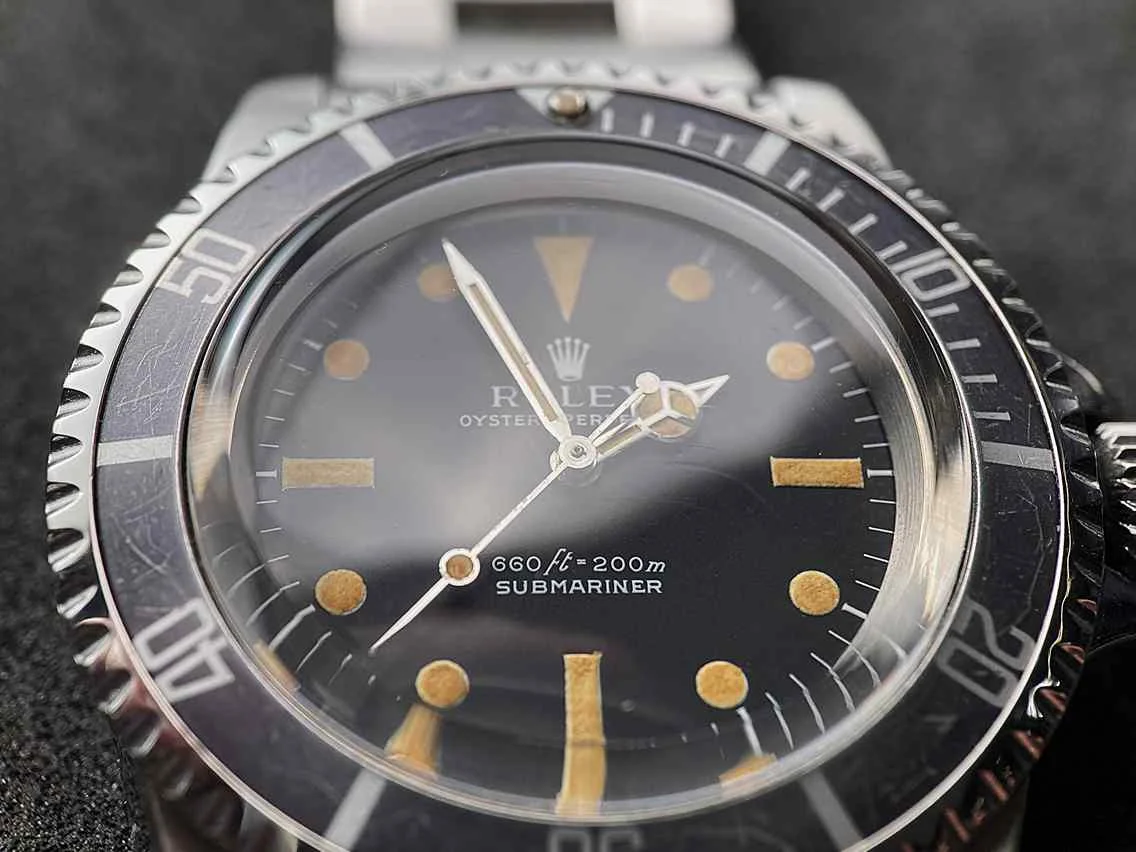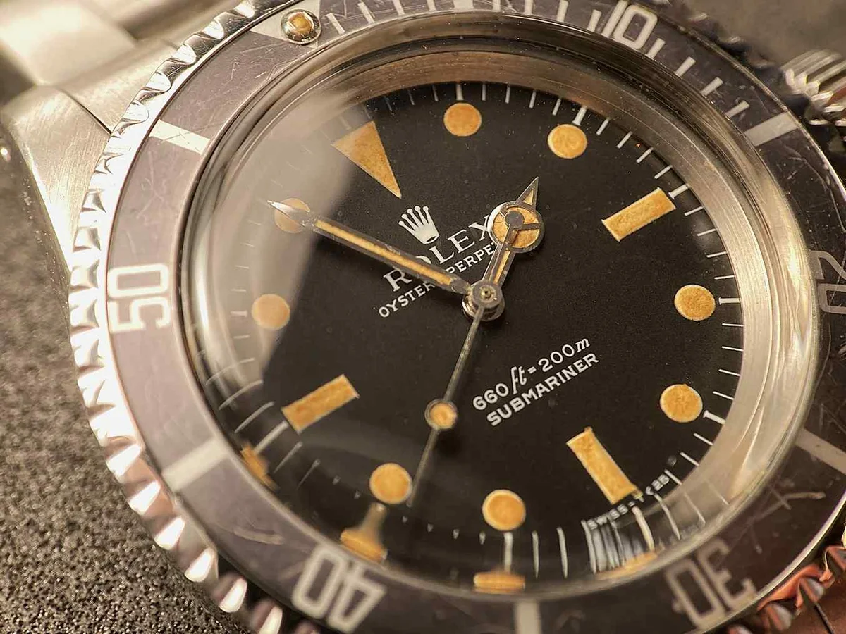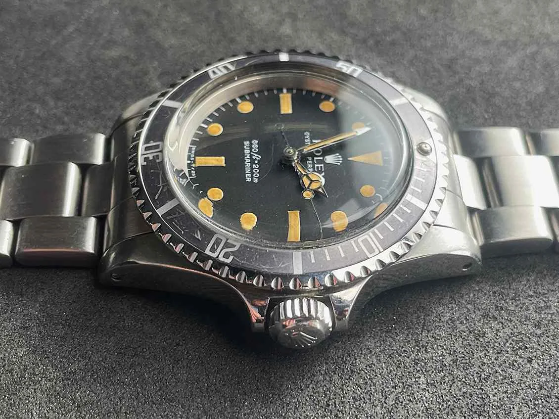 Rolex Submariner Reference 5513 “Serif” and “Feet First” dial. The 5152XXX serial range dates it to circa 1976. The “A” date code indicates 1976 as the manufacturing year. We believe it is original to the watch.