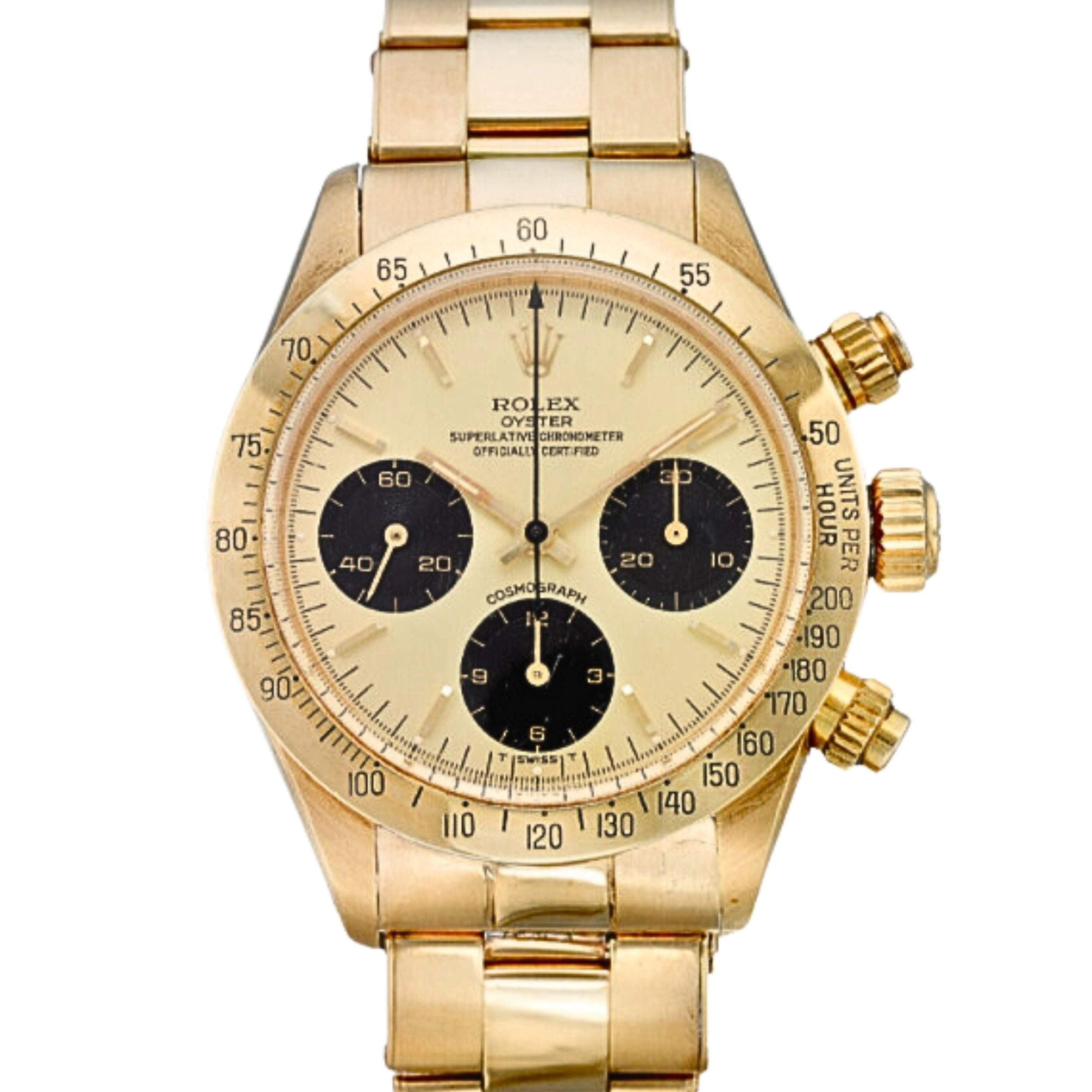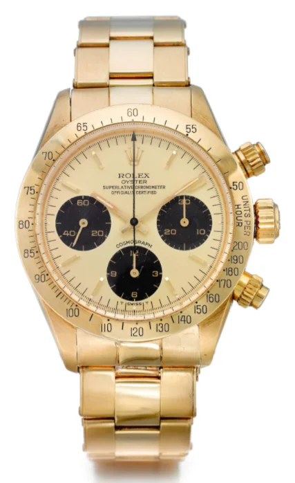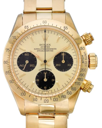 The Rolex Daytona 6265 is a hand-wound Daytona with screw-down crown and pushers, and an engraved bezel. It was in production from 1971 to 1988, when it was replaced by the self-winding 1652X.