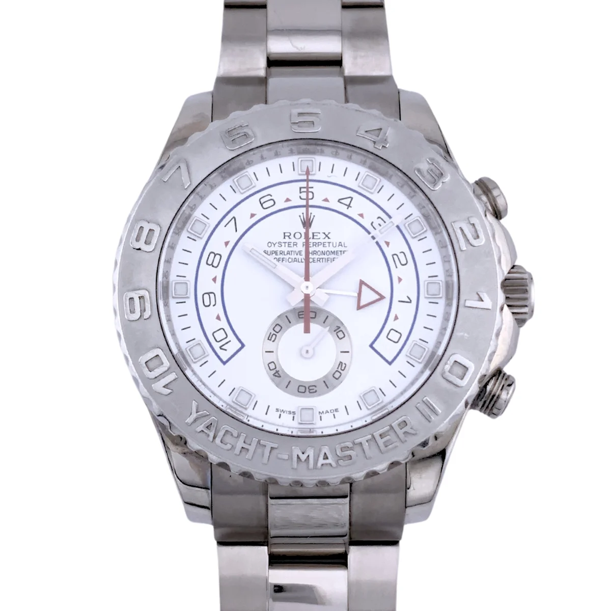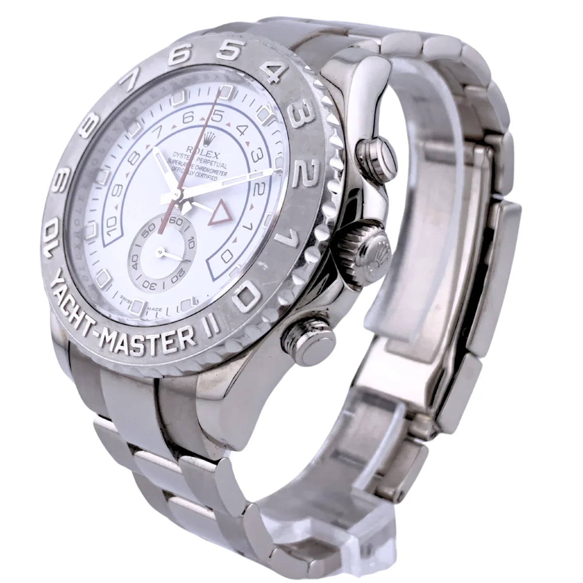 The Yacht-Master II is designed to meet the needs of professional sailors. This regatta chronograph features the world's first programmable countdown with a mechanical memory. It provides precise synchronization with the crucial starting sequence of a yacht race.