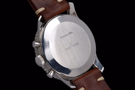The watch has just returned from a complete service by our watchmaker and is offered on a brown leather strap with a pin buckle (not Breitling).