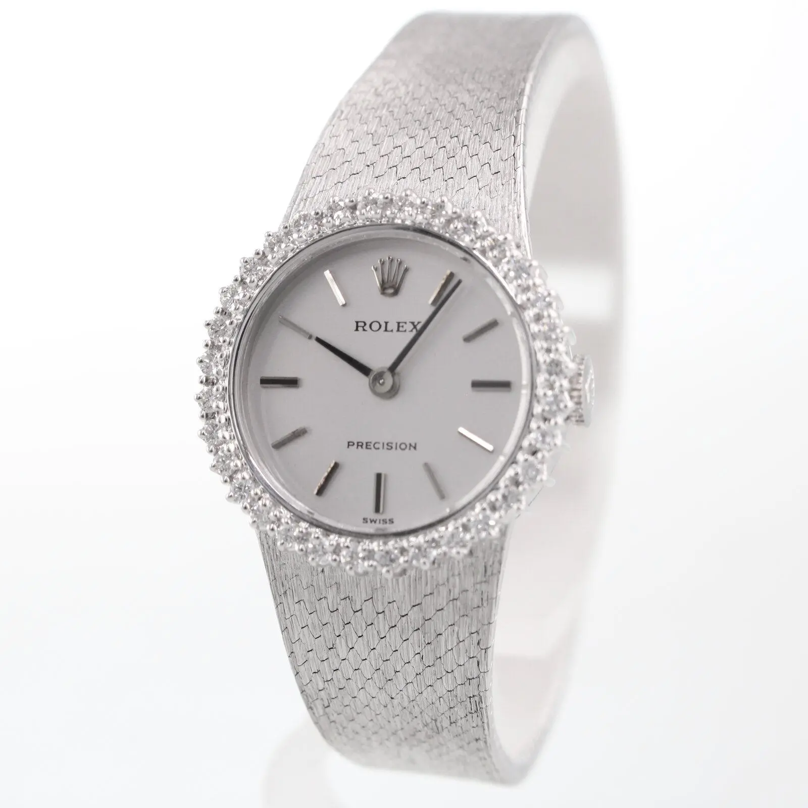 Rolex Precision 22 mm in white gold with diamond bezel.