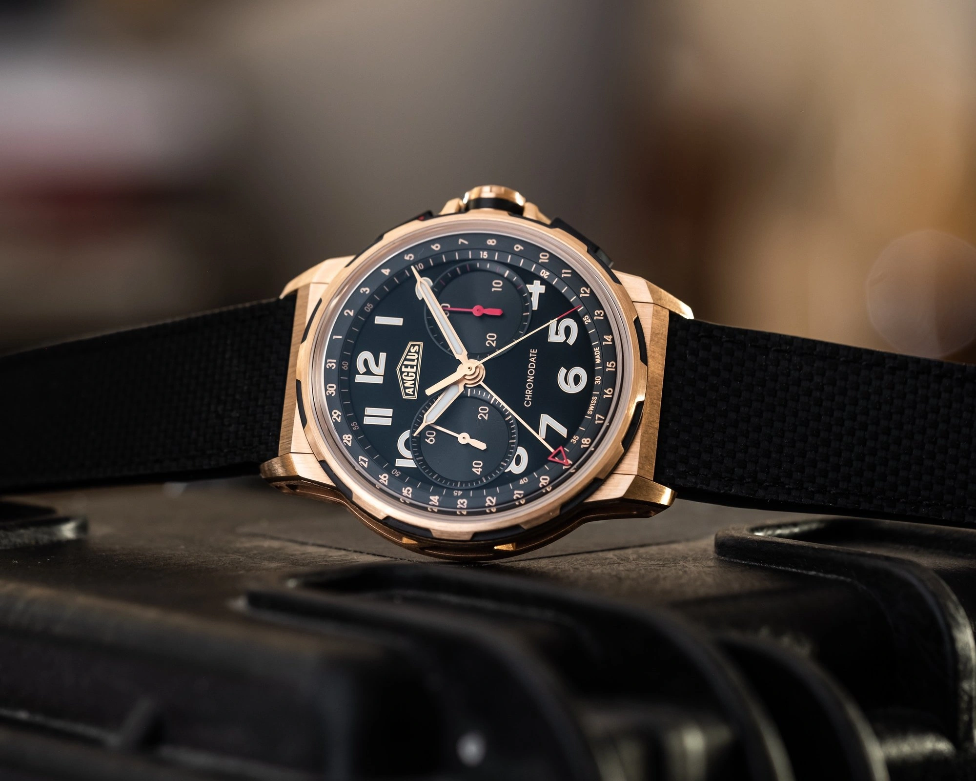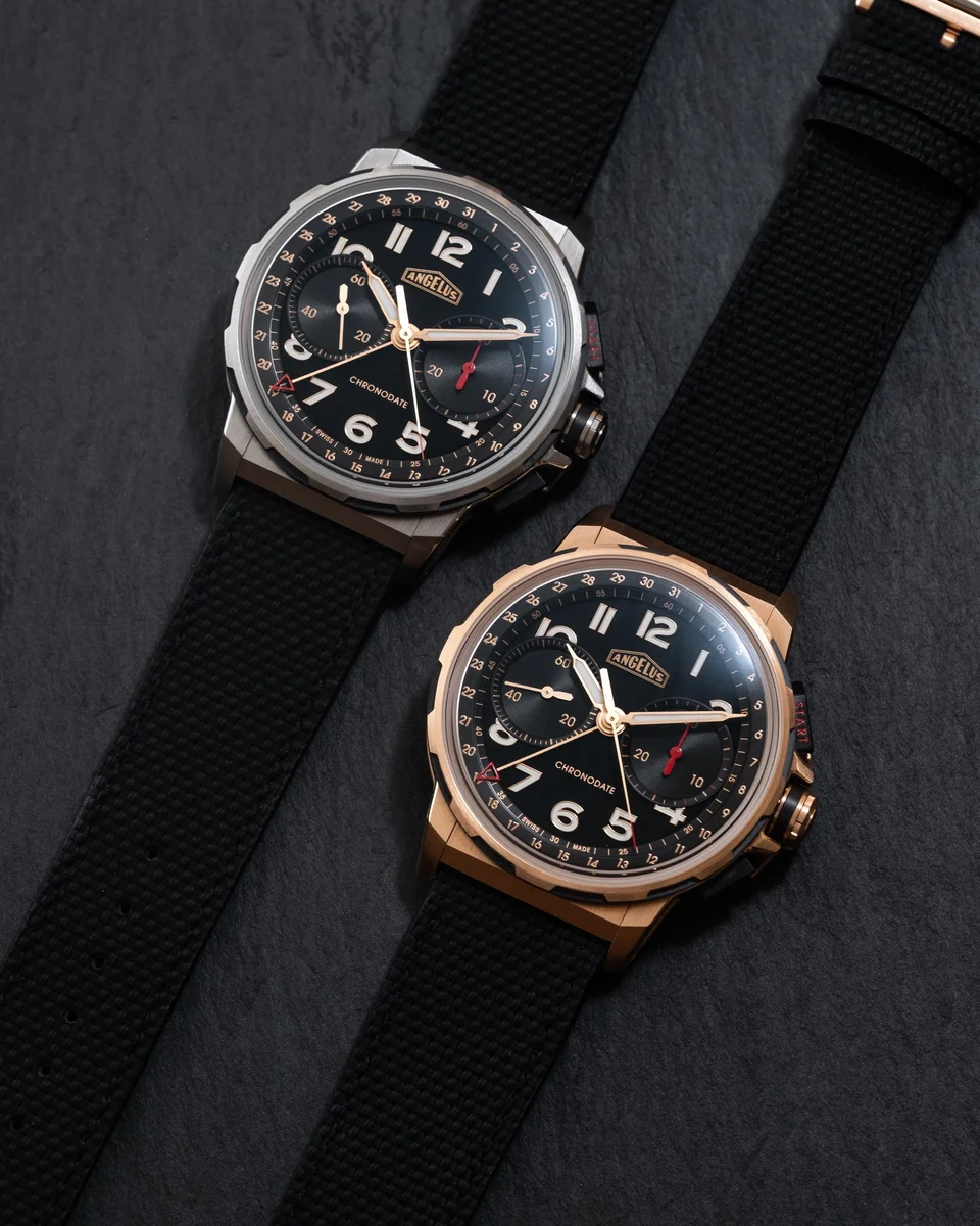 Founded in 1891 in La Chaux-de-Fonds in Switzerland, Angelus has been one of the most influential horological manufactures of the last century. Watchmaking connoisseurs universally hailed Angelus' pioneering, in-house developed movements and timepieces, which continue to be coveted by collectors all over the world. Today’s Angelus is fully equipped to design, produce, finish, assemble, regulate and test all its movements and timepieces in-house. The Angelus collection blends the very best of vintage high watchmaking with contemporary design and materials. Sold in 2011 to La Joux Perret SA, the brand today is dedicated to new techniques in high watchmaking display and mechanics – offering diving and racing tourbillons, as well as other horological feats.